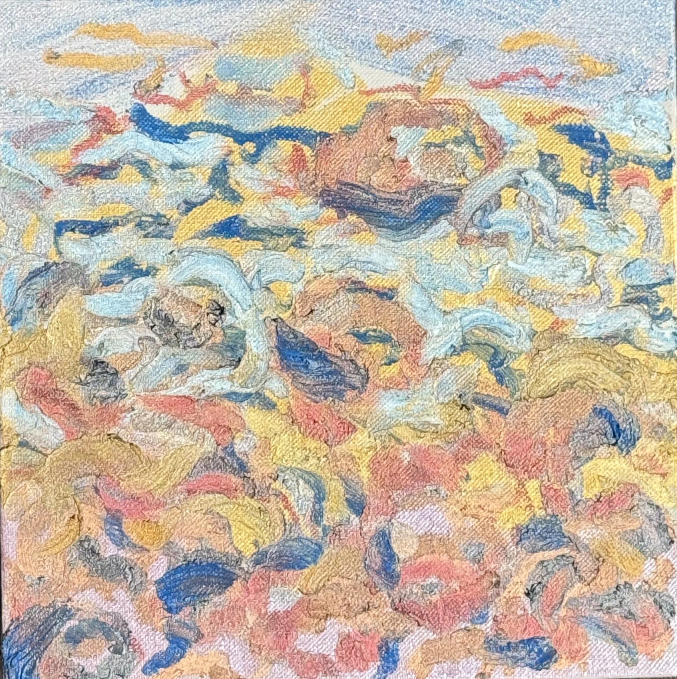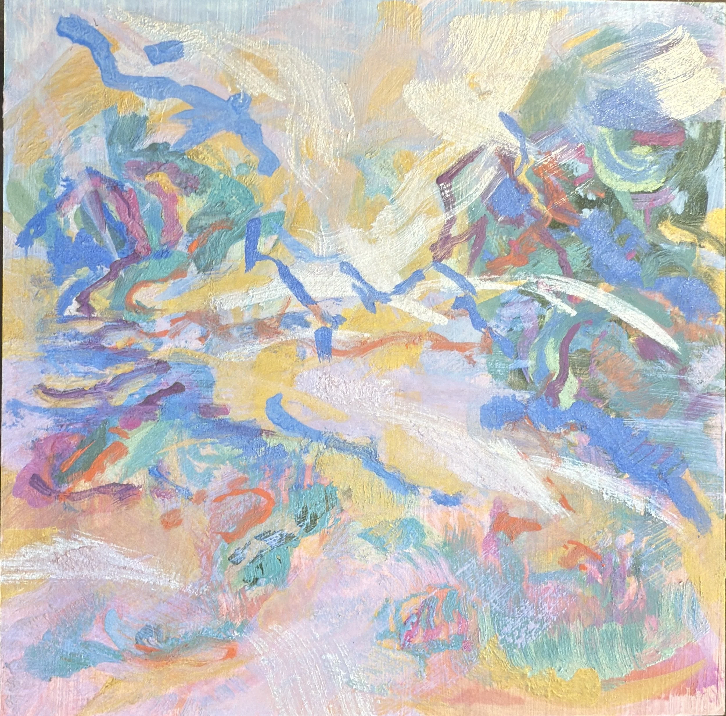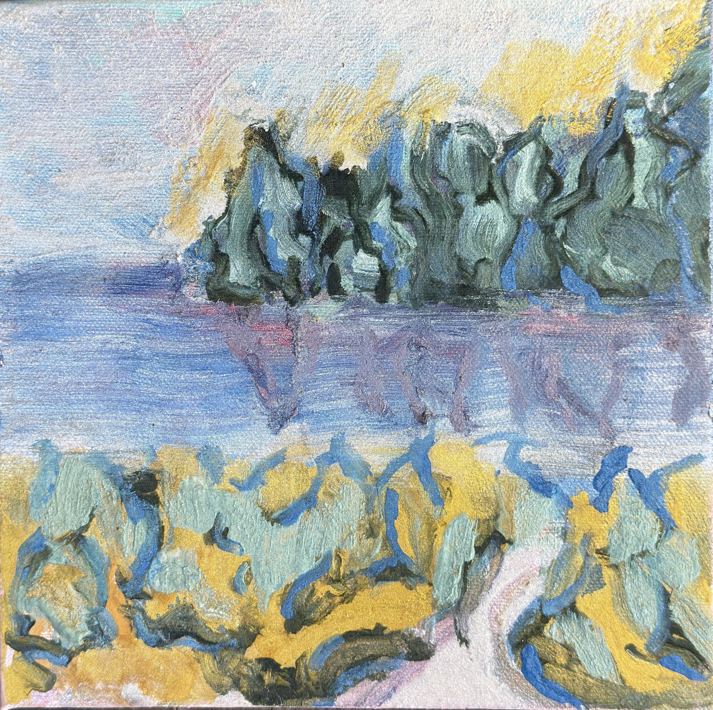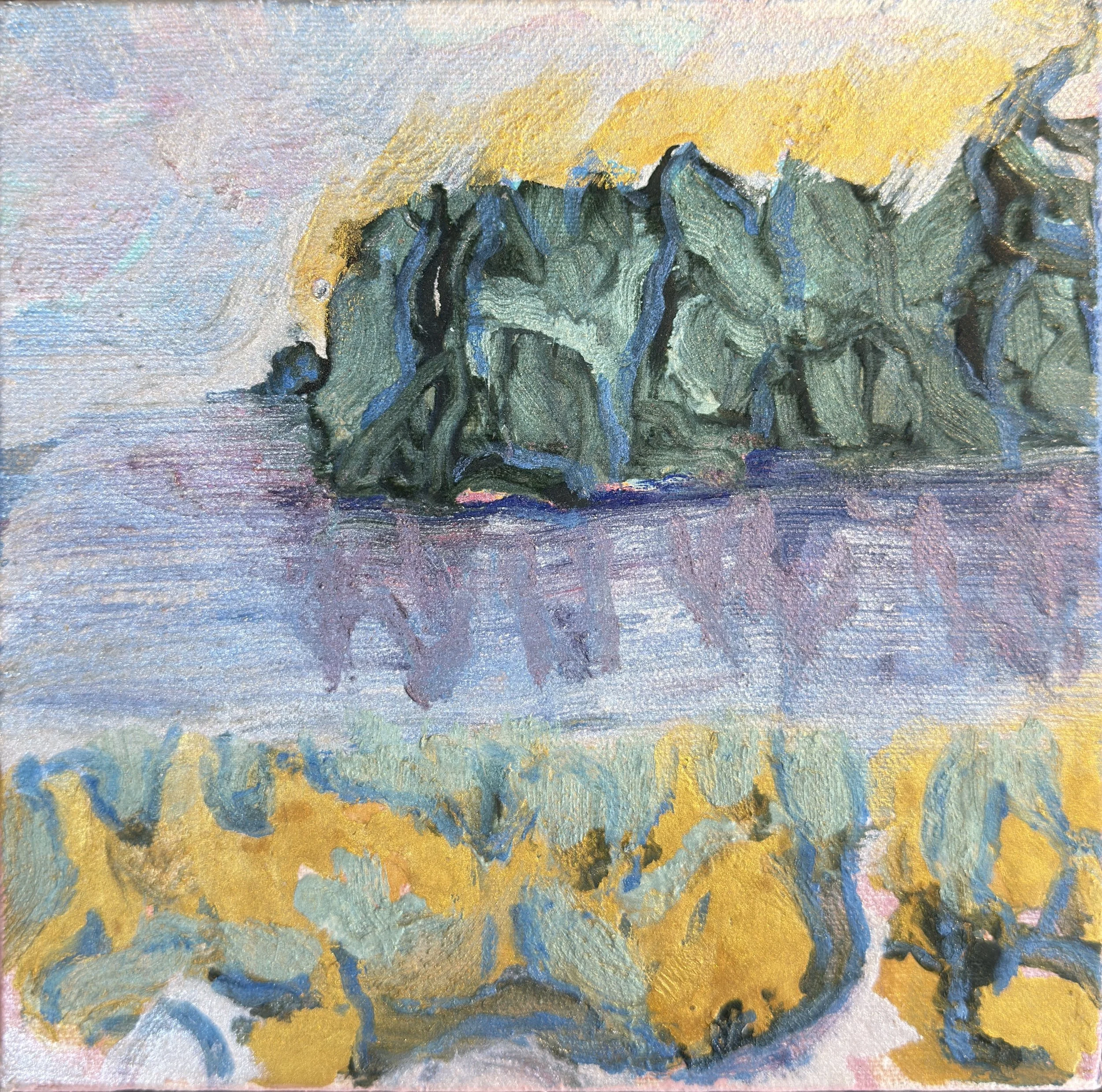My paintings begin in the sketchbook, where watercolors, iridescent washes, and gestural marks gather like breath on a page. These sketchbooks are not studies but origins, the place where memory and perception first take form. Light Over Water carries these beginnings forward into oil. What once shimmered with transparency on paper now deepens on canvas, yet light remains constant. Iridescent hues move across the surface, catching and dissolving like tide. The series was born from the view around my barn studio in Brooklin, Maine. The horizon, the apple tree, the crowns of bee balm and thistle, even the quiet geometry of sea urchins. The colors, too, are steeped in history. Inspired not only by the shifting tones of sea and sky, but also by the frescoes of Pompeii, where pigments still breathe with radiance across centuries. These paintings are not depictions of place but thresholds, where the fleeting and the eternal meet, and light itself becomes subject.